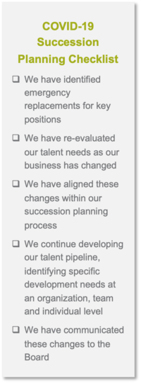 As we slowly move into recovery mode, it is likely that your organization is not the same as it was a mere three months ago. Changes to the business necessitate changes to the succession plan. Questions to ask the leadership team include: