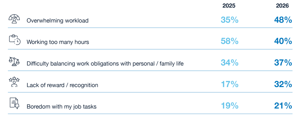 Top burnout drivers 2025 vs. 2026